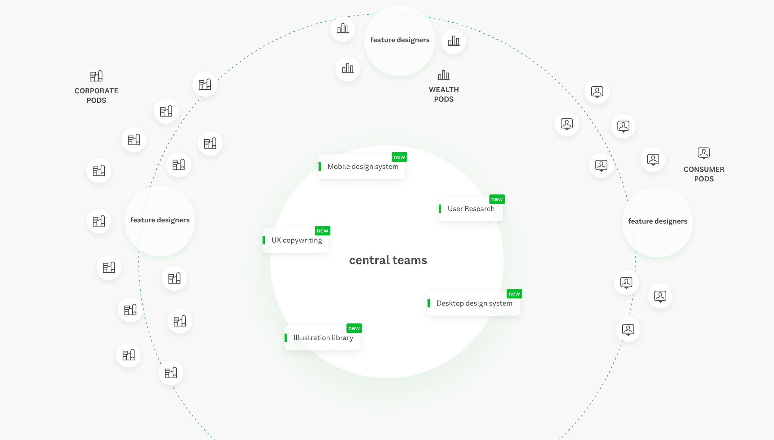 Created centralized teams that span across all businesses and feature design teams unifying the client experience.
